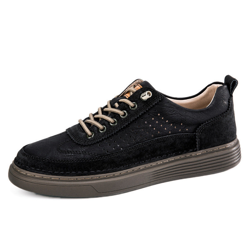 Summer Men’s Leather Perforated Sneakers – Breathable Sports & Casual Shoes for All-Day Comfort